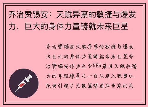 乔治赞锡安:天赋异禀的敏捷与爆发力,巨大的身体力量铸就未来巨星